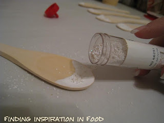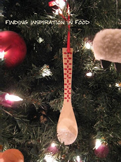Of course knowing that Christmas is getting closer and closer I have officially labeled myself as a crazy lady for adding on one more thing to do but how can you resist a cute project that took me 30 minutes to do? I first started by painting the “icing” on the front of the spoon with white paint. After starting I realized I could have just whipped out the white glue and done the same thing, but since I already had the paint brush and paint going I stuck too it. Next sprinkle on some glitter and let them dry.