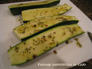 Combine all of the olive oil dipping mixture. Slice zucchini and drizzle on olive oil mixture. Grill until desired texture is reached.
