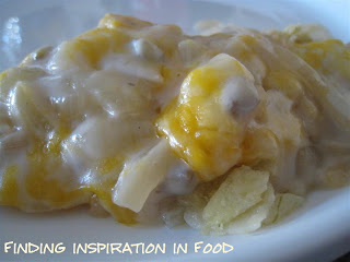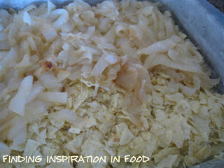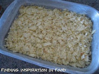 Transfer to prepared dish and top with crushed potato chips. (I did this backwards)