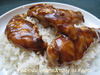 Thread chicken onto skewers. Cook on a greased grill on medium for about 8 minutes, turning once and brushing with marinade, until no longer pink inside. (I baked them in the oven at 350 degrees for 20 minutes. By the time the sauce thickened the chicken was done. Cooking them on the cookie drying rack gave them a fake grill mark and also kept them from sticking.)