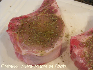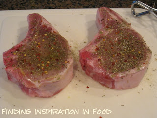The end result was fantastic! You can substitute any herbs you would like. I did buy a thicker cut of meat only because I didn’t want a thin cut that I would dry out in the first minute of cooking. If we wouldn’t have gobbled it up so quickly I would have taken a picture of the inside to show you how juicy they stayed. I didn’t put measurements because it depends on your taste, and size of pork chops, so just sprinkle enough to coat the meat.