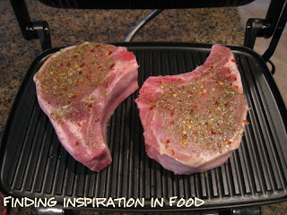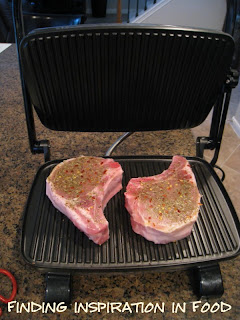 I have a confession to make…..I’ve never made pork chops in my life! I don’t know why but they scare me to death. I think maybe it’s because every time my hubby tries them when we go out to dinner they’re super dry and way over cooked. While I love our Sunday steak nights, I decided to man up and give the pork chops a try. Another confession is I don’t usually work the grill and I really hated to make my hubby fire up the grill for a meal I wasn’t so sure how it was gonna turn out so instead I got the idea of using my Panini press. I figure the shows on TV use an indoor grilling pan and since I don’t have one how could a Panini press be any different. Besides I can cook both sides at the same time and assure even cooking, how can it get any easier then that?!?!?