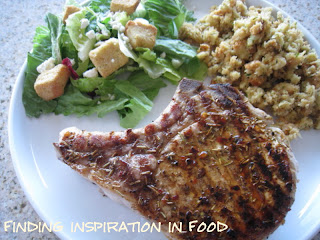 Drizzle olive oil on pork chops. Sprinkle remaining herbs and seasoning.