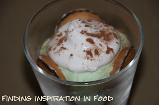 I had some guest over for dinner early last week and made a heavy meal so I wanted something light for dessert. I’ve been wanting to try this pie I saw in Family Circle, but I changed it up a little. Instead of making a pie crust I just stood up a cookie in the dessert cups and filled it with the filling. I also cheated and used whipped cream from a tub instead of making it.