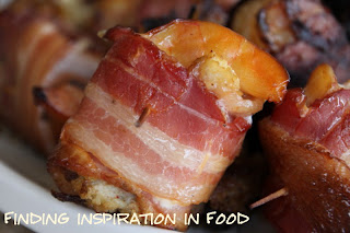 You can stuff the raw shrimp with a tablespoon of stuffing, then wrap with bacon and bake them in a 350 degree oven. Or you can grill them which is how we did ours today.