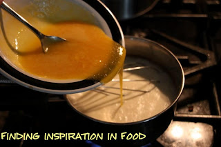 Return cream to a boil and quickly, very quickly, pour it into the yolk mixture, whisking constantly. (Yes I know I did this backwards.)