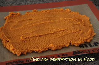Heat oven to 350 degrees. Lightly butter a small baking sheet. Spread pumpkin puree evenly over prepared baking sheet.