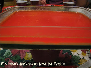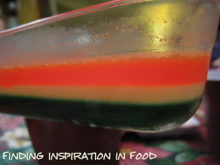 3rd layer – 1 package cherry jello, mix according to directions. Pour over white jello.