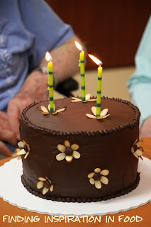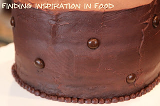 Sunday we had a party for my husband’s grandfather who turns 89 today. I wanted to share the cake I made for him which turned out really cute. I made everything from scatch then once I frosted the cake I added little dots around the base.