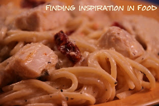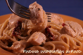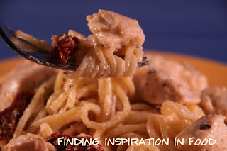 Stir in chicken and lemon juice, cream mixture, sundried tomatoes and slivered basil. Add reserved pasta water, a little at a time, until the sauce is creamy. Taste and add additional salt and pepper, if necessary. Pass additional shredded Asiago or Parmesan at the table.