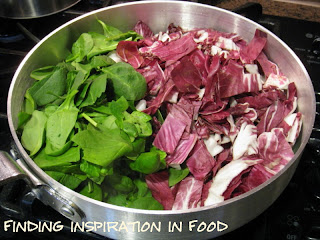 So give it a try it is tasty, but be sure to see all my notes. I made it using radicchio because the grocery store didn’t carry treviso.