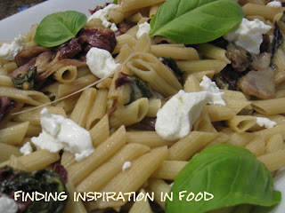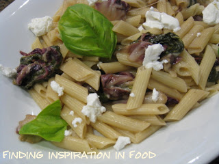 I liked this dish, but the hubby wasn’t too thrilled with it. It was VERY salty, but the more goat cheese you add the more it toned it down which is probably what the reason is, but then all you taste is goat cheese and nothing else. I cooked the whole box of pasta and looking at the picture in the cookbook mine looks like all noodles and there’s has more fluff to it. Another change I’ll list below in the recipe. My stuff looked pretty then it clumped big time!