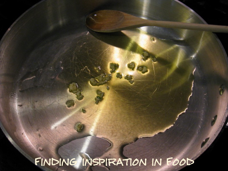 Meanwhile, in a 12 inch skillet, heat the oil over medium heat. Add the garlic and cook until fragrant and golden, about 1 minute. Remove the garlic and discard. (I added the garlic back in the dish instead of wasting it, you couldn’t taste it.)