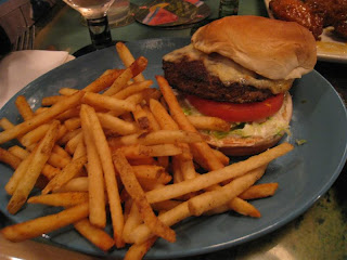 Since we where at a burger place we had to get burgers. I ordered a Powerhouse Burger (hot wing sauce, asiago cheese, blue cheese dressing, tomato and lettuce).