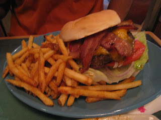 My husband ordered the Bacon Cheddar Burger (cheddar cheese, applewood smoke bacon, lettuce, tomato, red onion, pickles and mayo).