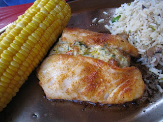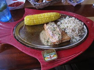 For the entree I ordered the Grouper Florentine (grouper loaded with their popular crab meat and spinach stuffing, baked golden brown). We both liked this one even though we had to sprinkle a little extra seasoning on it.