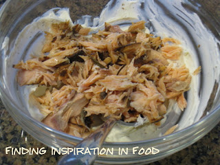 Drizzle salmon with oil; sprinkle with salt and pepper. On greased baking sheet, roast salmon at 400 degrees F for 10 minutes, or until center flakes easily with fork. Cool; remove and discard skin and dark meat. In medium bowl, flake salmon; combine with cream cheese and dill.