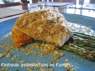 Have you ever have a design of how you want to plate your food and then it doesn’t come out as good as what you visioned. That’s what happened to me on this plate. I laid the asparagus long ways next to the sweet potatoes and then you couldn’t see them when you placed the fish on top so then I gave up and just went with this. Not to mention I have my husband in the background asking if it’s ready so we can eat because he’s hungry. You can’t rush art! I don’t think it looks too bad, but looking at it now I wish I would have leaned the asparagus on top of the fish. Oh well, I’ll be making this again so I’ll get to play around with plating.