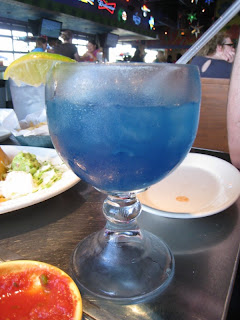 The platter was plenty of food, but since D and I had never been there we also ordered the SUNSET FAJITA BURRITO $11.95 Grilled beef, chicken or combination fajita wrapped in a flour tortilla smothered in our queso inferno. Served with guacamole and sour cream. This was a disappointment and I wouldn’t order it again. The burrito looks huge but there’s maybe a 1/4 cup of tiny chopped fajita meat inside and nothing else.