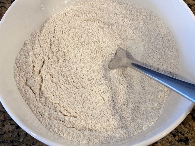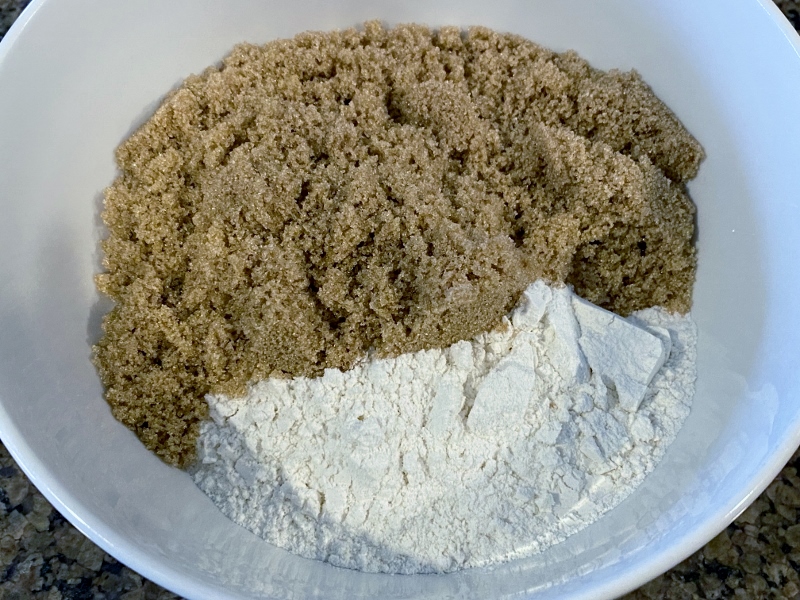 In a mixing bowl, stir the plain flour and light brown sugar together