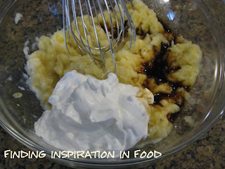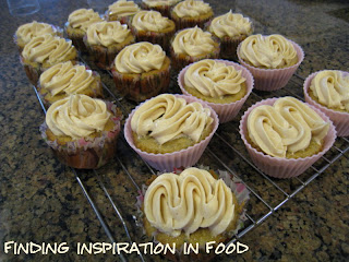 I had some bananas about to go bad so instead of tossing them out I looked on my handy dandy Iphone app Epicurious. This recipe grabbed me because you could eat the cupcake part for breakfast or make the frosting and eat it as a cupcake. The cake part is reminiscent of banana bread and is really dense. So you don’t want to make these in those really large cupcake sizes!
